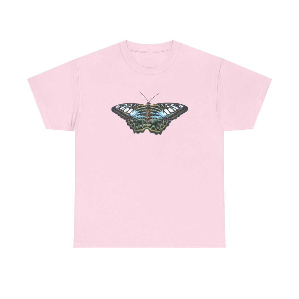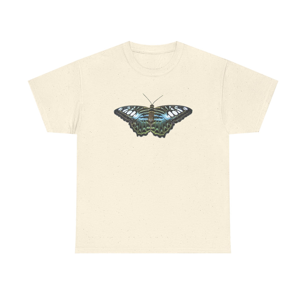 Indulge your inner lepidopterist by telling everyone you meet that the gorgeous butterfly decorating this tee is Parthenos sylvia, the tropical Blue Clipper butterfly of S.E. Asia.