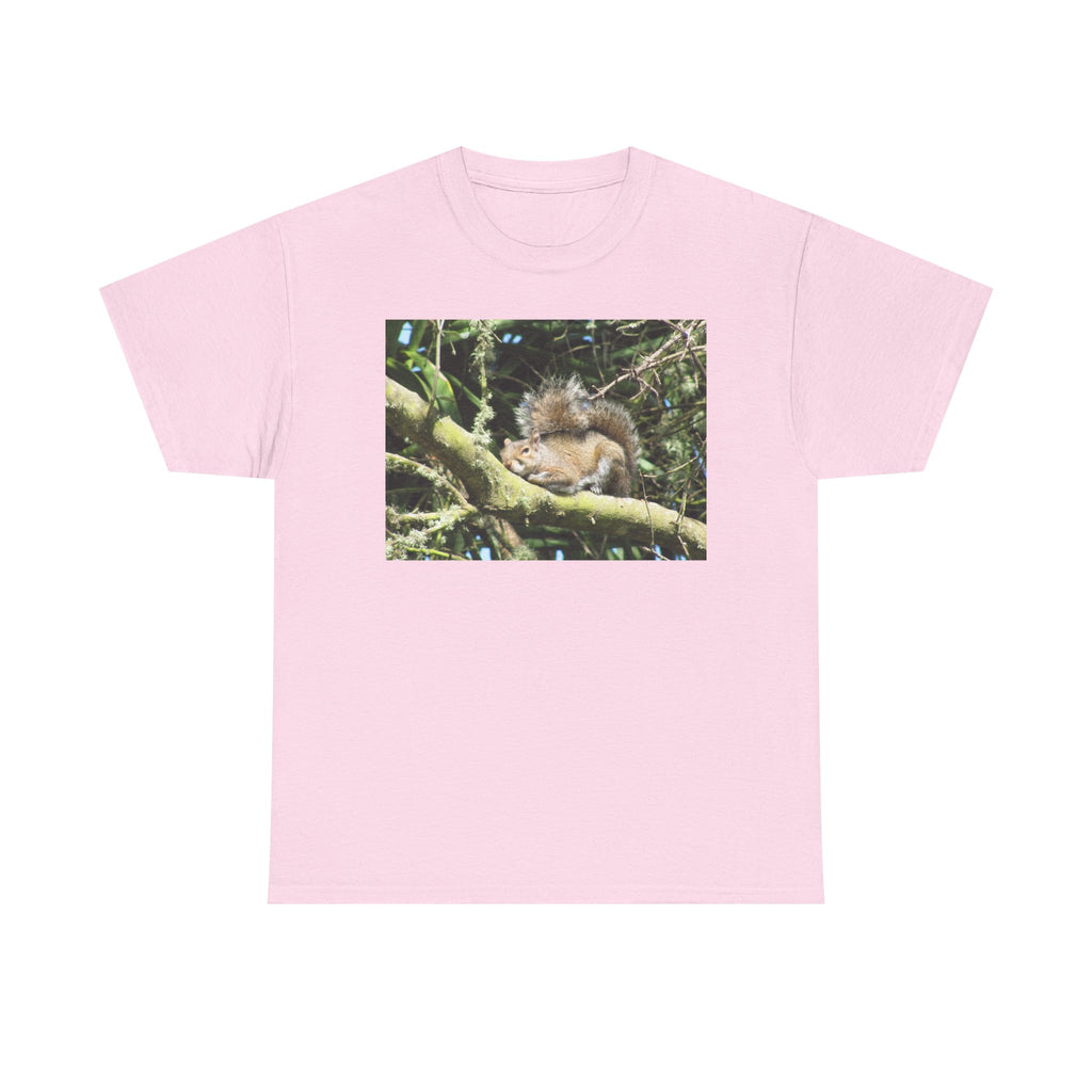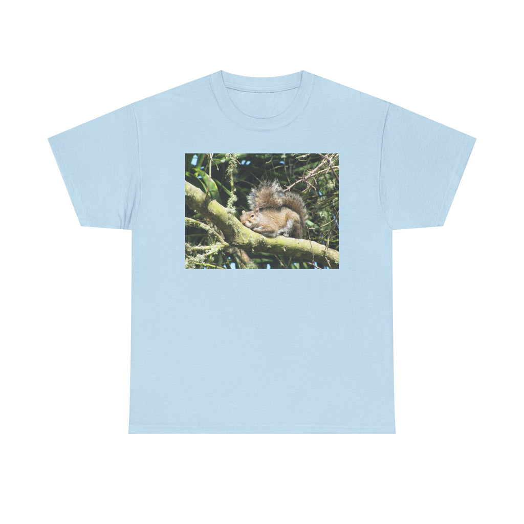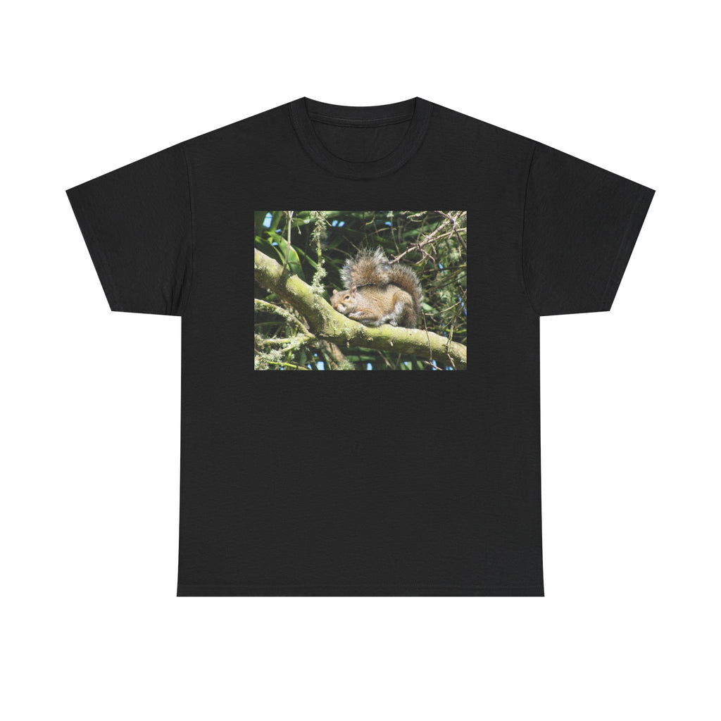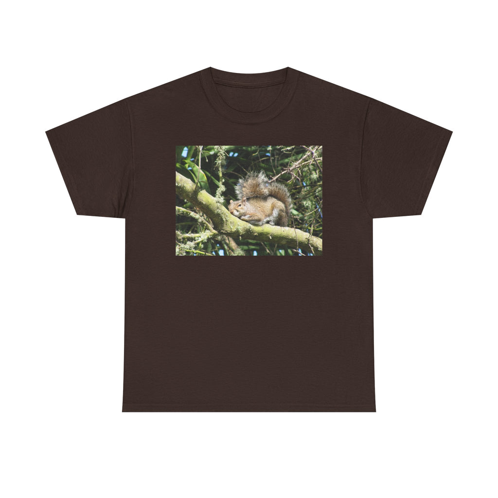 A soft, breathable classic tee that brings a quiet slice of forest life into everyday wear. The photograph-print of a sleeping squirrel on a branch sits gently on the chest, inviting slow moments and weekend walks. The relaxed crew neck and classic fit make it comfortable layered under a jacket or paired with jeans for a casual wander. Ethically made from sturdy cotton with crisp, detailed printing, this shirt ages with character — like the paths and trees that inspired it.