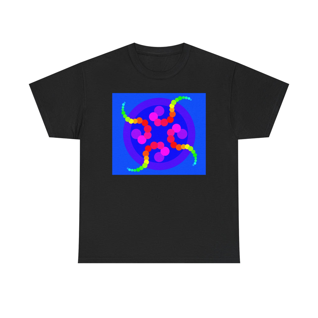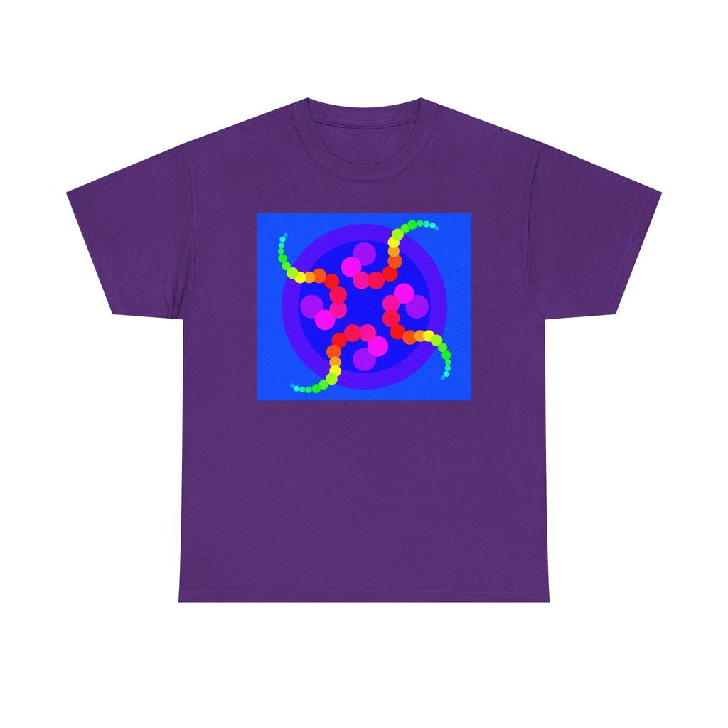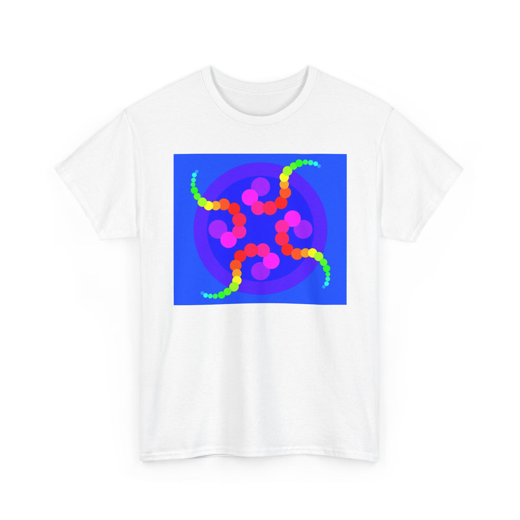 The jellyfish design on this tee is a beautifully mesmerizing swirl of rainbow colors.