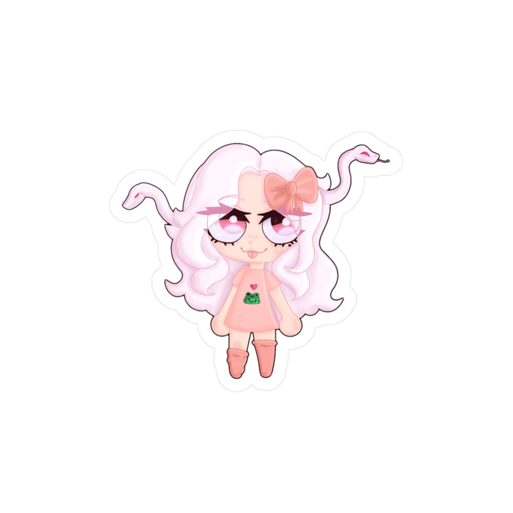 Cute Pink Medusa Girl Kiss-Cut Vinyl Sticker No background— Cute Pastel Character Decal for Laptops, Water Bottles & Notebooks