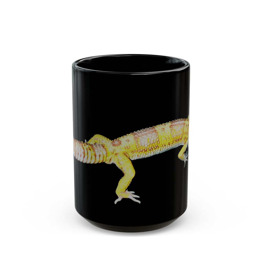 Albino Leopard Gecko Black Ceramic Mug — Cute Yellow Gecko Coffee Cup (11oz, 15oz)