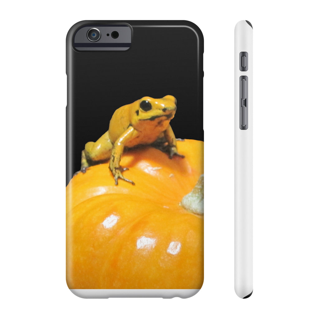 This Phyllobates terribilis golden poison dart frog wants to help celebrate Halloween and the bounty of the season with you. Famously the most toxic frog on the planet, this one is captive bred, so she doesn't have the dietary batrachotoxins like her wild cousins, but don't tell anyone and she'll help guard your phone.
