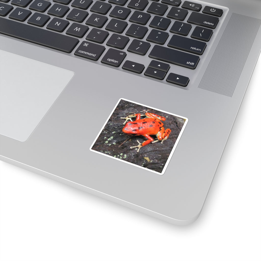Red Strawberry Poison Dart Frog Square Sticker — Bright Red Amphibian Laptop Decal